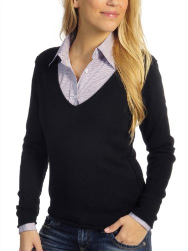 kuscheliger Kaschmirpulli von Milano Italy, taillierte schmale Passform, edler Kaschmirstrick in In&Out Verarbeitung, kontrastfarbige Ellenbogenpatches, V-Ausschnitt sowie Arm- und Hüftabschluss mit schmalen Rollsäumen, Länge in Größe S ca.59cm, 100% Kaschmir