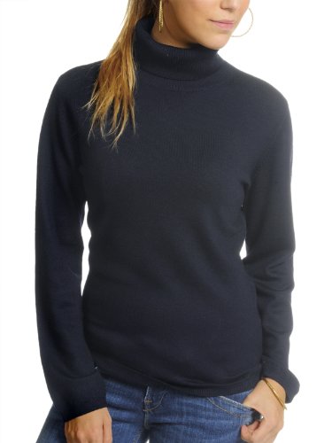 puristischer Rollkragenpullover von Milano Italy, leicht taillierte Passform, hochwertiger Strick aus feiner Merinowolle, Arm -und Hüftabschluss mit schmalem Rippbündchen, Länge in Größe S ca.62cm, 100% Wolle