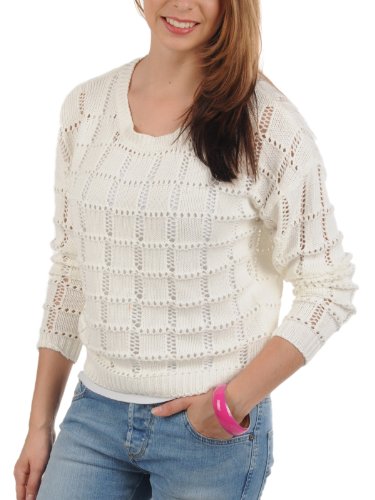 toller Pullover von Vila, kurz geschnittene normale Passform, leichter Feinstrick aus feinem Baumwollgarn, aufwendiges Strickmuster, schöner Rundhalsausschnitt, schmale Rippbündchen an den Saumabschlüssen, Länge in Größe S ca.52cm, 100% Baumwolle