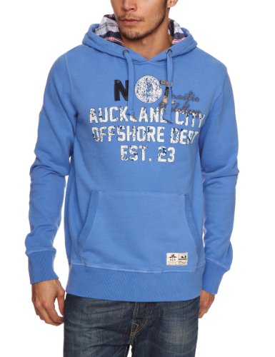 cooles Sweatshirt von New Zealand Auckland, normale Passform, aus hochwertigem Baumwollsweat, Kapuze mit Tunnelzug, aufwendiges Logostitching mit Logoprint auf der Brust, Kängurutasche mit Logopatch, Arm- und Hüftabschluss mit Rippbund, aufgesetzte Ellenbogenpatches, Länge in Größe M ca.69cm, 100% Baumwolle