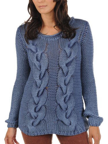 toller roter Strickpullover von Object, in leicht verwaschener Optik, mit großem Zopfmuster vorne, schmal geschnitten, Rundhalsausschnitt, schmale Bündchen, Länge in Größe S ca.68cm