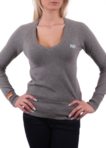Superdry Retro Vintage Orange Label Classic Vee Strickpulli mit V-Ausschnitt, klassisch gesticktem Logodetail und gesticktem Logoetikett am Ärmel.Baumwolle 100%