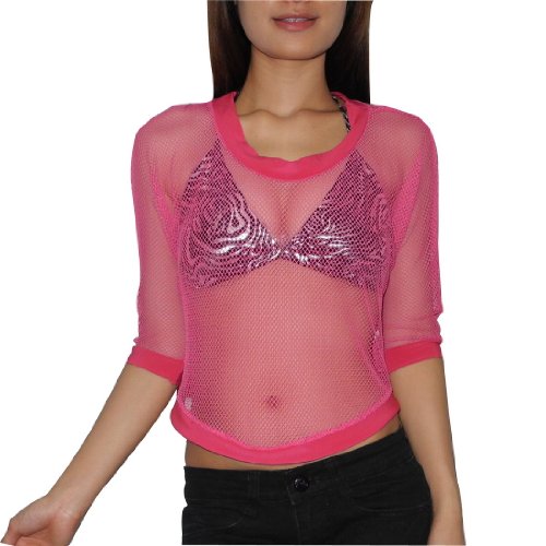 2PCS SET CLUBWEAR: Frauens ThaiSexy Exotic Dancing Fishnet Mesh Top & Unpadded Bra / Clubwear Set (Größe: S-M)