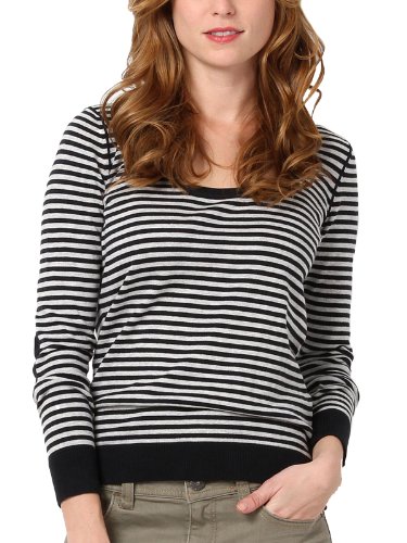 schöner Pullover von Esprit, taillierte Passform, hochwertiger Baumwollfeinstrick in gestreiftem Dessin, schmal eingefasster Rundhalsausschnitt mit Rippbund, Armeinsatz mit formschöner Minderung, unifarbige Ellenbogenpatches, gerader Arm- und Saumabschluss mit Rippbund und Ton-in-Ton Logostitching, Länge in Größe S ca.59cm, 100% Baumwolle