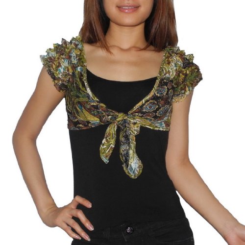 Frauen Thai Exotisch Mode Niedlich Tie-vorne Crop Top / Overbluse Schier (Größe: S)