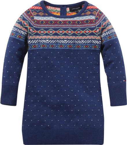 Tommy Hilfiger Mädchen Kleid (knielang) JANELLE MINI CN SWEATER DRESS L/S / GJ57108109, Gr. 98 (3T), Blau (470 TWILIGHT BLUE)