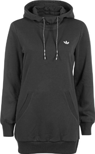 langer Basic Sweater von Adidas, hochwertige Materialmischung, innen kuschelig aufgeraut, Kapuze mit Tunnelzug, Logostitching auf der Brust, große Tasche mit zwei Eingriffen, Arm- und Hüftabschluss mit Rippbündchen, Länge in Größe S ca.78cm, 70% Baumwolle 30% Polyester