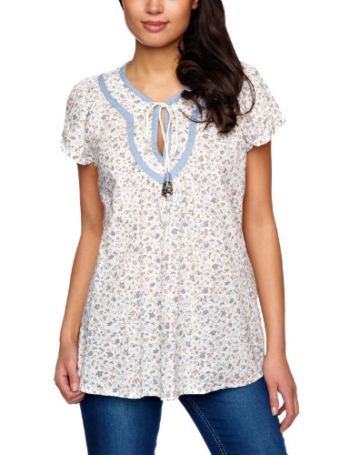 geblümte Tunkia, gerade geschnitten unten leicht ausgestellt, leichtes Baumwollgewebe in Knitter-Optik, verspielter Ausschnitt mit Bindeband, kurze Ärmel mit Rüschen, gerader Hüftabschluss, Länge in Größe S ca.62cm, 100% Baumwolle