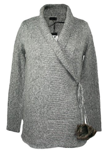 hübsche Strickjacke von Vero Moda, weiter Kragen, wird seitlich durch ein Band mit Fellbommeln verschlossen, Bündchen an den Ärmeln, schön lang geschnitten, Obermaterial 53% Acryl, Obermaterial 21% Baumwolle, Obermaterial 20% Polyamid, Obermaterial 6% Wolle