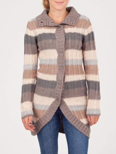 gestreifte Strickjacke von ICHI, Stehkragen, durchgehende Druckknopfleiste, grobes Strickmuster, lang geschnitten, Obermaterial 100% Acryl